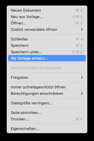 - Gehen Sie auf “Datei“ und dann auf “Als Vorlage sichern“.