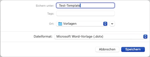 - Speichern Sie das Dokument im entsprechenden Format (.dotx) ab.