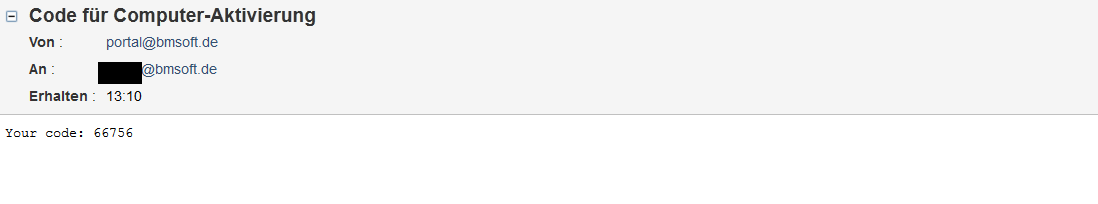 • Sie erhalten eine E-Mail mit dem Autorisierungscode (In unserem Beispiel 66756)