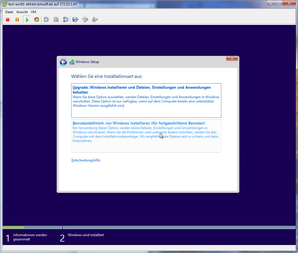 - bitte tragen Sie den Computernamen ein, welchen Sie von unserem Servicetechniker erhalten haben (in unserem Beispiel test-win81-x64)