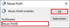 Geben Sie im freien Textfeld einen Namen für das Profil ein (Empfehlung: geben Sie hier Ihre E-Mail Adresse ein) und bestätigen Sie Ihre Eingabe mit „OK“.